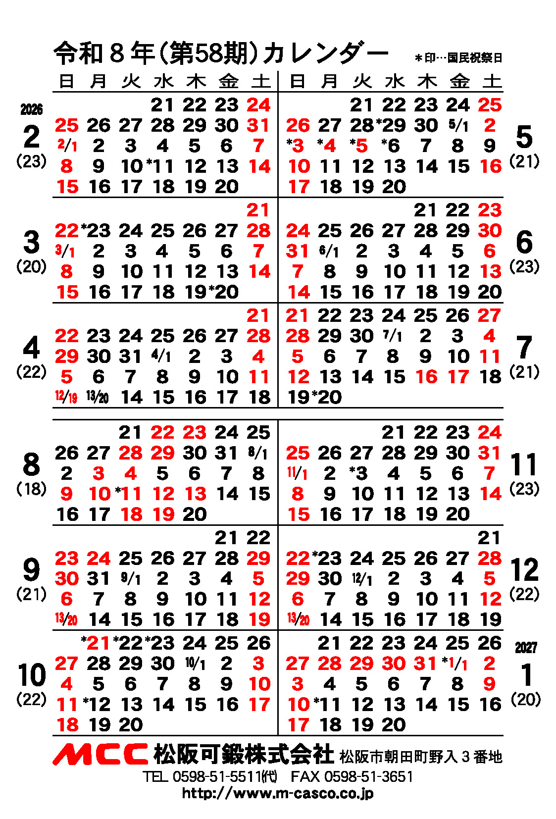 当社カレンダー